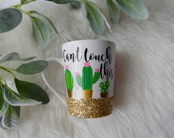 Can't touch this cactus mug by hollycastodesign on etsy.