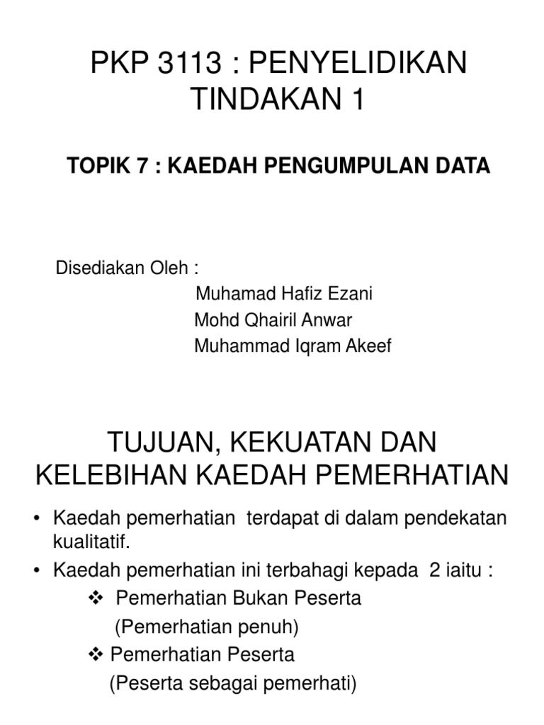 3.3 metode pengumpulan data secara asasnya terdapat empat kaedah pengumpulan data yang sering digunakan dalam penyelidikan2 iaitu temubual, soal selidik, observasi dan eksperimental. Teknik pengumpulan dan analisis data kualitatif1 oleh ivanovich agusta 1. Kaedah pengumpulan data kajian tindakan pdf document Tajuk 7 kaedah pengumpulan data pdf laman ashaario sce3113 penyelidikan tindakan i sains pendidikan rendah kaedah tajuk 7 7 1 penyelidikan tindakan course hero Saya juga telah menerangkan secara jelas tentang cara mengumpul data untuk setiap peringkat yang berbeza.