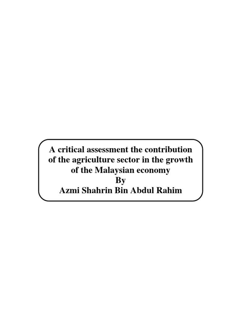 Related : The Importance Of Agricultural Sector To Malaysian Economy Pdf / Externally, the price of agriculture commodities will continue to be exposed to swings and shifts in demand due to the interplay of substitutionary and..