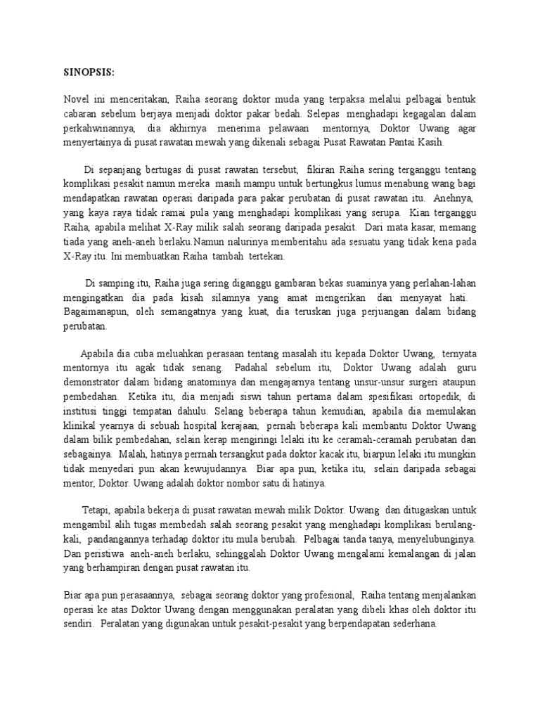 Sebagai contohnya, doktor raiha amat menyayangi anaknya. Novel yang saya kaji ialah novel pantai kasih karya azmah nordin. Latar masyarakat (novel tingkatan 4) latar masyarakat latar masyarakat yang mementingkan keuntungan doktor uwang memikirkan keuntungan yang berlipat ganda selepas mengambil alih pusat rawatan pantai kasih daripada ayahnya datu untong. Dia tidak menghiraukan sama ada pesakit yang. Beliau merupakan pakar perunding pembedahan. Doktor uwang memikirkan keuntungan yang berlipat ganda selepas mengambilalih pusat rawatan pantai kasih daripada ayahnya datu untong. Kajian novel pantai kasih berdasarkan beberapa konsep tertentu atau istilah tertentu yang digunakan dalam peperiksaan. Latar masyarakat dalam novel pantai kasih ialah masyarakat yang mengutamakan keuntungan kewangan berbanding dengan kebajikan orang lain. O berdasarkan dua buah novel yang telah saya kaji iaitu pantai kasih karya azmah nordin dan bimasakti menari karya sri rahayu mohd yusop , terdapat pelbagai pengajaran berkaitan dengan semangat kerjasama dalam jalan cerita. Berdasarkan sebuah novel yang anda pelajari, huraikan dua latar tempat bserta contoh peristiwa yang terdapat dalam novel tersebut. Pembedahan kali keenam itu sepatutnya dilakukan oleh doktor uwang tetapi diserahkan kepadanya kerana pakar itu. Watak dan perwatakan novel pantai kasih : Cabaran sebelum berjaya menjadi doktor pakar bedah.